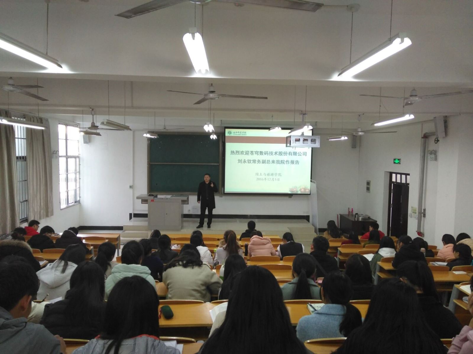 下午,應(yīng)國土與旅游學(xué)院秦院長的熱情邀請,劉總為該院的土地管理專業(yè)及地理信息系統(tǒng)專業(yè)共60余名學(xué)生做了報(bào)告。劉總首先結(jié)合自身的求學(xué)經(jīng)歷告訴大家要在扎實(shí)學(xué)習(xí)專業(yè)知識的同時(shí)開始清晰規(guī)劃以后的就業(yè)方向、明確選擇以后的就業(yè)平臺,不要“常立志,要立長志”,并以“古之成大事者,不惟有超世之才,亦有堅(jiān)韌不拔之志”與廣大師生共勉;其次就目前學(xué)生所學(xué)專業(yè)并結(jié)合行業(yè)的發(fā)展前景、就業(yè)形勢及蒼穹數(shù)碼的業(yè)務(wù)架構(gòu)進(jìn)行深度剖析,在演講過程中采取與學(xué)生互動的方式,極大地調(diào)動了學(xué)生活躍度與興趣,這種接地氣的互動不僅拉近了與學(xué)生的距離,同時(shí)也讓學(xué)生得到了知識,達(dá)到了寓教于樂的目的;最后劉總重點(diǎn)闡述了公司的企業(yè)文化“感恩、團(tuán)隊(duì)、效率、學(xué)習(xí)”,既讓學(xué)生對今日的校園時(shí)光有所反思,又讓學(xué)生對未來的職場充滿期待。最后在學(xué)生們熱烈的掌聲中愉快地結(jié)束了本次交流。