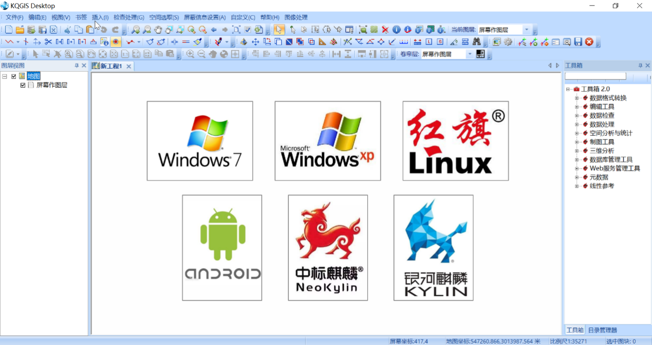 跨平臺軟件技術(shù)包括多個(gè)方面,能實(shí)現(xiàn)應(yīng)用程序在多個(gè)平臺下運(yùn)行,提高軟件的重用性。KQGIS Desktop利用跨平臺GIS技術(shù),實(shí)現(xiàn)了對多種國內(nèi)外操作系統(tǒng)(Windows、Linux、UNIX、Android等)和CPU架構(gòu)(x86、ARM、MIPS等)的支持。