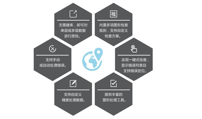 KQGIS Desktop支持高效的數(shù)據(jù)質(zhì)量檢查與批量處理,具備完善的數(shù)據(jù)檢查方案,支持?jǐn)?shù)據(jù)錯(cuò)誤的手工及批量處理,工作效率高。