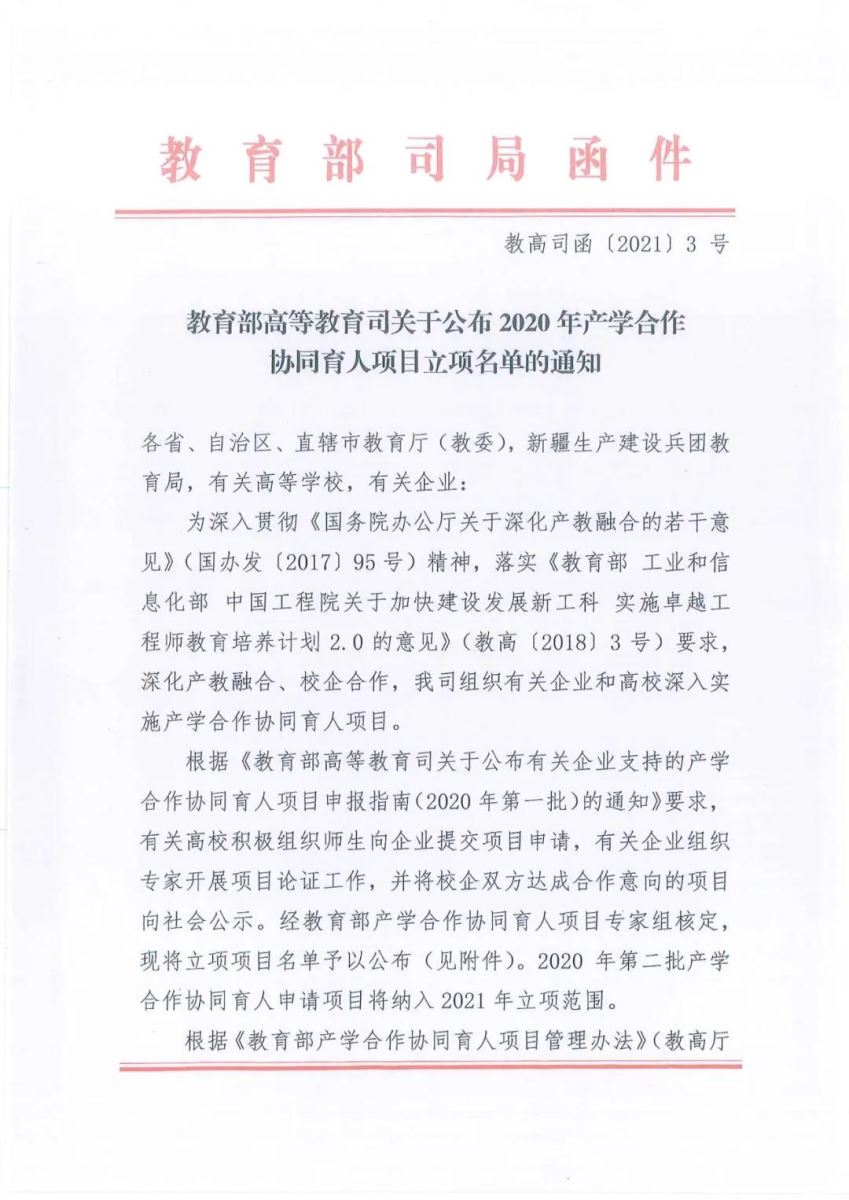 教育部2020年產(chǎn)學(xué)合作協(xié)同育人項(xiàng)目立項(xiàng)名單(企業(yè)順序)