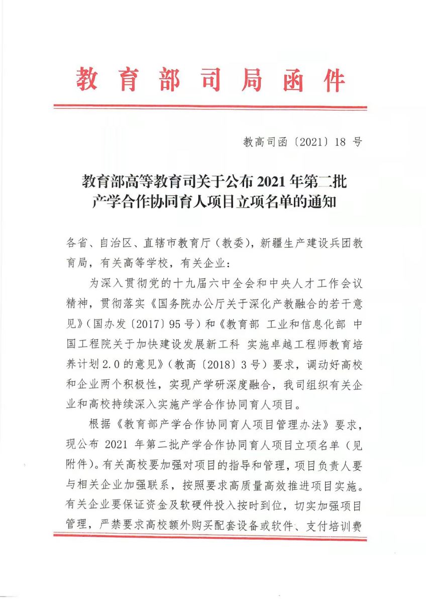 12月14日,《教育部高等教育司關(guān)于公布2021年第二批產(chǎn)學(xué)合作協(xié)同育人項(xiàng)目立項(xiàng)名單的