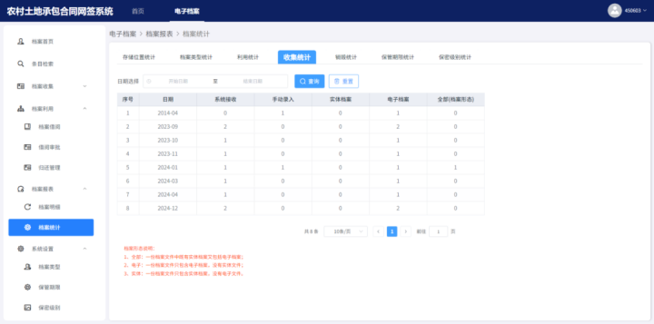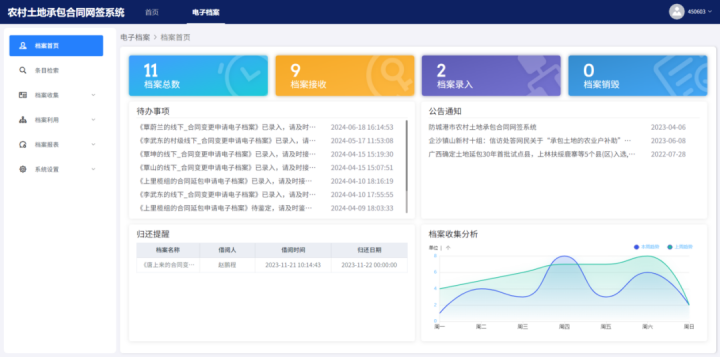 系統(tǒng)還能根據(jù)行政區(qū)劃和檔案類別對各類檔案資料進(jìn)行統(tǒng)計(jì)分析,生成直觀多樣的數(shù)據(jù)報(bào)表,幫助管理者清晰掌握省市縣鄉(xiāng)村等各級(jí)行政區(qū)劃內(nèi)二輪延包檔案資料情況,為領(lǐng)導(dǎo)的科學(xué)決策和布局提供有力支撐。