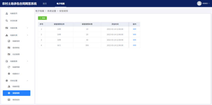基于《二輪延包檔案管理辦法》,系統(tǒng)智能設(shè)置檔案類型、檔案保管期限、密級(jí)和材料歸檔內(nèi)容范圍,讓檔案的“生命周期”管理更加科學(xué)。同時(shí)系統(tǒng)支持手動(dòng)或自動(dòng)鑒定到期檔案,進(jìn)行延期或銷毀處理,確保檔案管理的規(guī)范性與安全性。