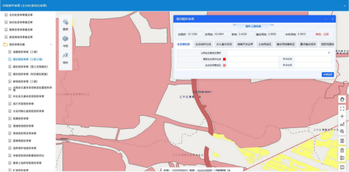 針對(duì)項(xiàng)目申報(bào)多補(bǔ)正、有退件的問(wèn)題,沿用江蘇省建設(shè)用地審批系統(tǒng)中的帶圖審批能力,省市縣三級(jí)部門(mén)依托統(tǒng)一的底圖開(kāi)展業(yè)務(wù)審批工作,并將一鍵圖審功能、業(yè)務(wù)審查功能前置至縣、區(qū)組卷階段,實(shí)現(xiàn)在報(bào)件組卷環(huán)節(jié)即可分析審查報(bào)批地塊是否存在規(guī)劃沖突、占用生態(tài)管控空間、占用永久基本農(nóng)田等問(wèn)題,通過(guò)技術(shù)性輔助審查前置減少后續(xù)補(bǔ)正、退件的耗時(shí)。并同步建立圖形審查結(jié)果緩存機(jī)制,系統(tǒng)自動(dòng)存儲(chǔ)管理前序?qū)徍谁h(huán)節(jié)的圖形審查結(jié)果,當(dāng)流轉(zhuǎn)到后續(xù)廳局領(lǐng)導(dǎo)審核節(jié)點(diǎn)時(shí)可直接調(diào)取前序圖審結(jié)果,無(wú)需重復(fù)分析,從而提升審批效率。